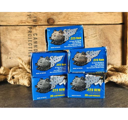 It's Awesome Auction™ time again at Harvey's Pistol & Pawn in Knoxville, TN! For this auction we offer a total of 100 rounds of Silver Bear .223rem 55gr Bimetal HP steel case ammunition. (396875.25). NOTE: we do NOT ship ammunition.