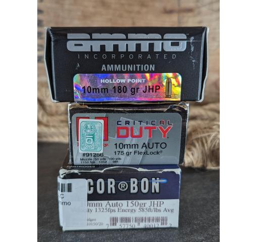 It's Awesome Auction™ time again at Harvey's Pistol & Pawn in Knoxville, TN! For this auction we offer a total of 51 rounds of 10mm defense ammo including: 20 rounds of Corbon 150Grain JHP; 20 rounds of Ammo Inc. 180Grain JHP; And 11 rounds of Hornady Critical Duty 175Grain FlexLock HP (390377.49). Note: We do NOT ship ammunition.