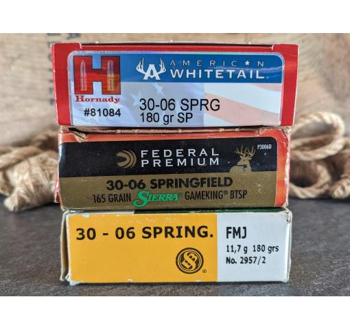 It's Awesome Auction™ time again at Harvey's Pistol & Pawn in Knoxville, TN! For this auction we offer a total of 59 rounds of 30-06Springfield ammunition. This Awesome Auction will come with: 20 rounds of Hornady American Whitetail 180Grain; 20 rounds of Federal Premium 165Grain Sierra Gameking BTSP; And 19 rounds of Sellier & Bellot 180Grain FMJ's. (399037.31). NOTE: We do not ship ammunition!