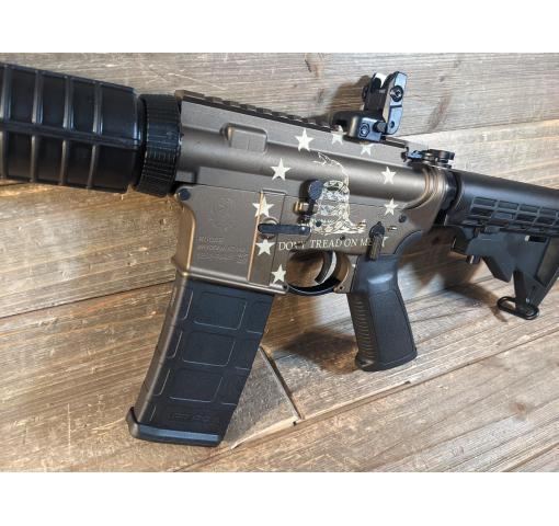 It's Awesome Auction (TM) time again at Harvey's Pistol & Pawn in Knoxville, TN! For this auction we offer a brand new in box Ruger AR-556 Don't Tread On Me Distressed Edition (388867.21.80HA). This Awesome Auction features: 16.1" barrel; A2 post front sight with pop-up rear sight; adjustable stock; Has a 1:8" rate of twist; And includes one 30 round detachable box magazine.