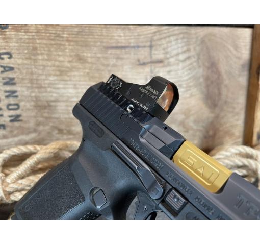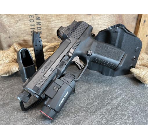 It's Awesome Auction (TM) time again at Harvey's Pistol & Pawn in Knoxville, TN! For this auction we offer a Pre-Owned Canik TP9 Elite Combat Executive 4.73" 9mm w/ Burris Fastfire M3 Optic, in original case (326721.18.75HA). This pistol features a Salient Arms gold barrel, mag well and fiber optic sights and arrives with a Crimson Trace light, mag loader and two magazines (one 15rd and one 18rd).