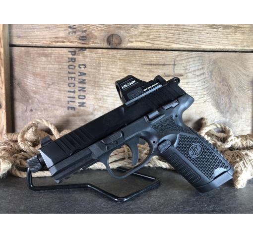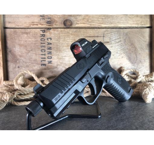 It's Awesome Auction™ time again at Harvey's Pistol & Pawn in Knoxville, TN! For this auction we offer a pre-owned in original soft case FNH 502 .22lr. (446300.12.50). This semi-automatic handgun features a 4.5" threaded barrel, suppressor height sights, Holosun HE507C-GR X2 green dot sight, ambidextrous slide release, ambidextrous thumb safety, ambidextrous magazine release, one 10 round magazine, & four 15 round magazines.